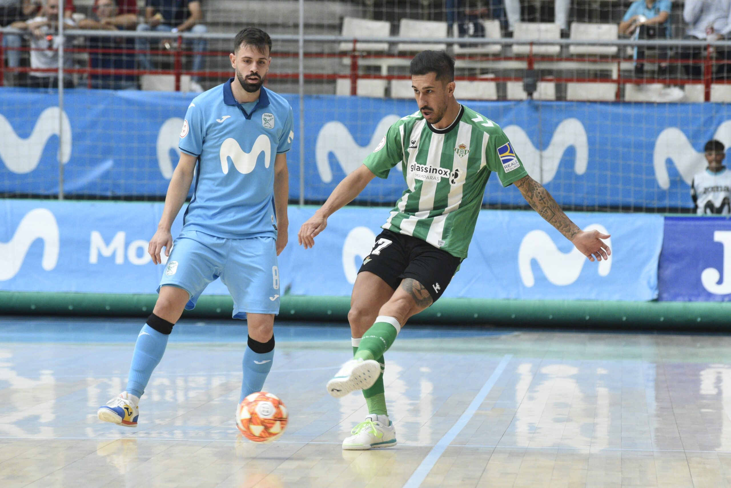 Fernando Drasler pasa el balón ante la vigilancia de Raya Fuente: Real Betis Futsal