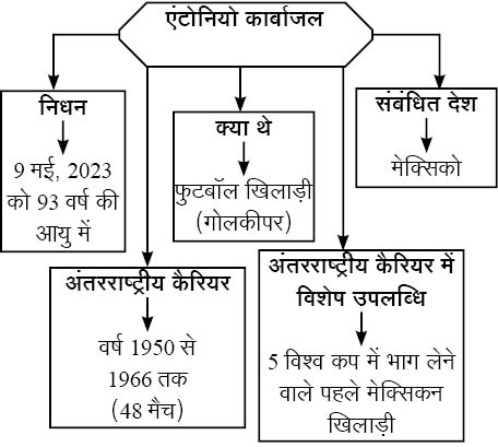 प्रश्न - 9 मई‚ 2023 को फुटबॉलर एंटोनियो कार्बाजल का निधन हो गया वह किस देश के प्रसिद्ध फुटबॉलर खिलाड़ी थे?